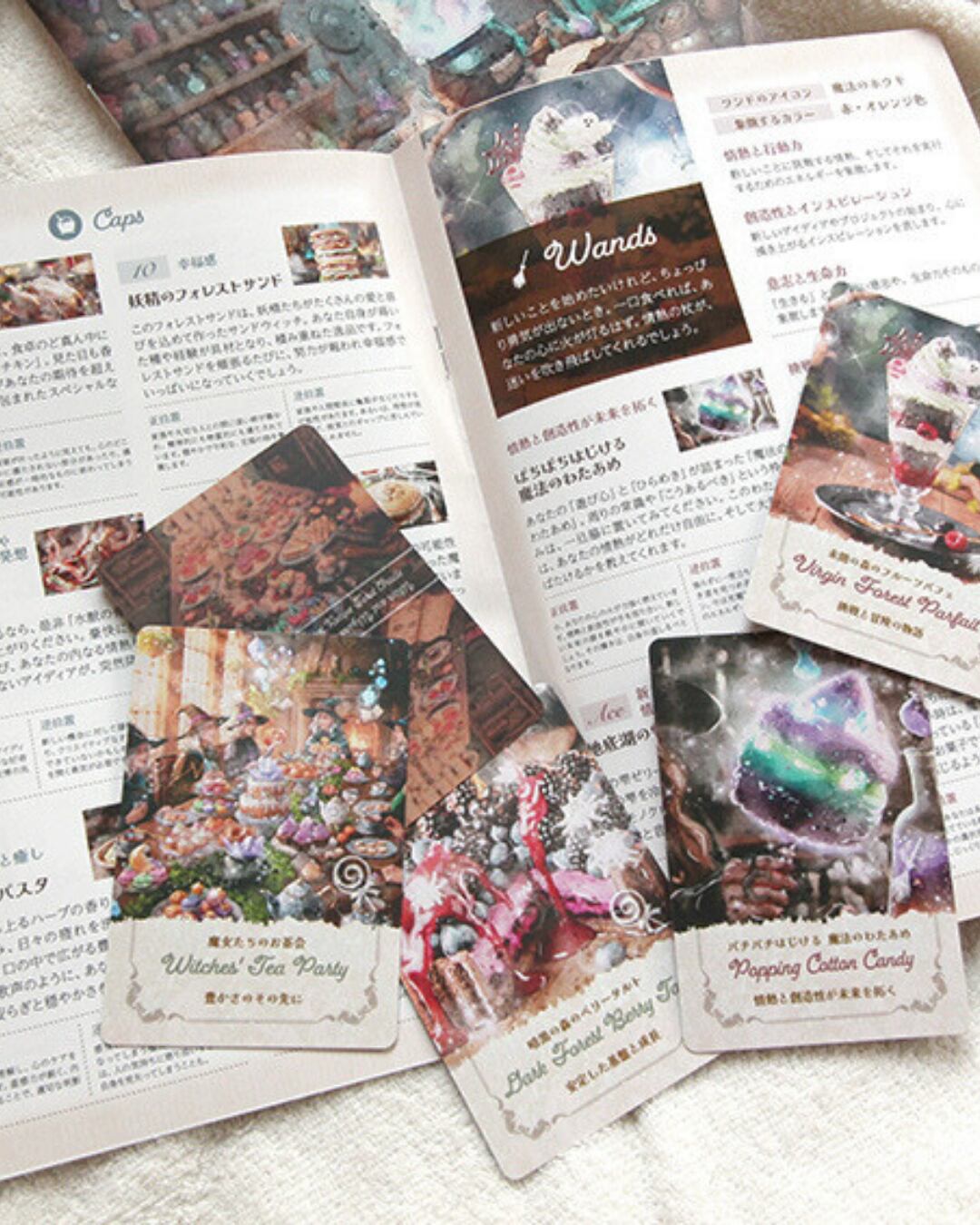 ワンド、ソード、カップ、ペンタクルといった伝統的なタロットの意味に加え、「心の状態を整えるための魔法のレシピ」が組み合わされています。 「カードが示す心の状態」と「それを良い状態にする具体的な方法」がセットでわかります。