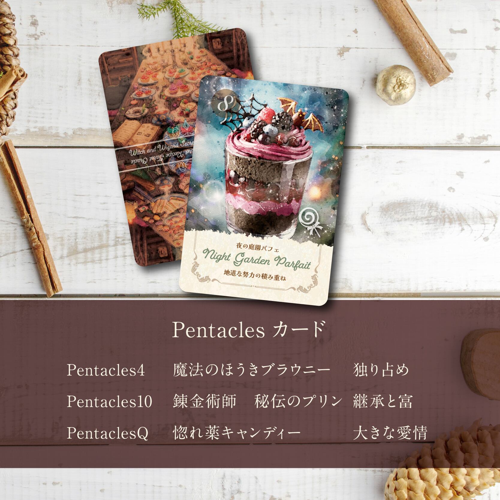 魔女編は、Wands(14枚)とPentacles(14枚)の2種類のカードデッキを収録!